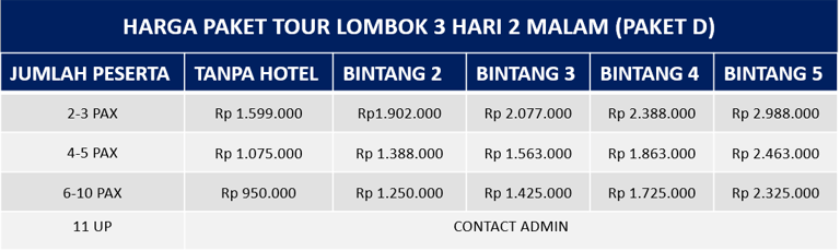 Angka 2-3 orang, 4-5 orang dan seterusnya merupakan jumlah peserta tour, semakin banyak jumlah peserta maka harga paket tour per orang akan semakin murah.