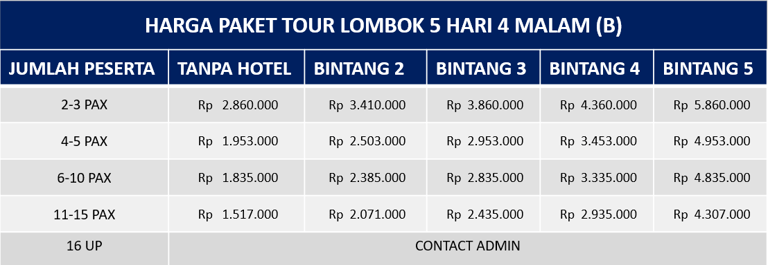 Paket Tour Lombok 5 Hari 4 Malam (B)